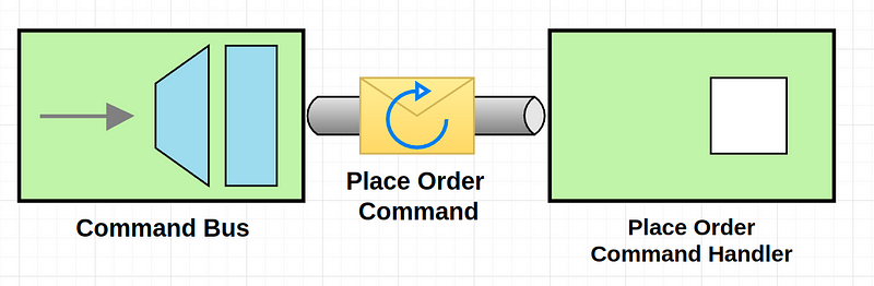 When the Command is sent via the Command Bus, it goes through a channel to the Command Handler. The channel can be asynchronous or synchronous.