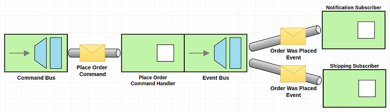 From there, in our case, we publish Event Message using the Event Bus. The Event will be deliver to each of the subscribing Event Handlers.