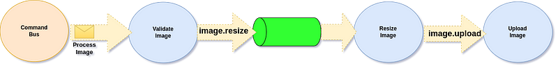 Each Message Handler, whatever it’s Command Handler, Event Handler or Internal Handler is connected through Message Channels. In case of Internal Handler we’ve stated that it’s input Channel is “image.resize”.