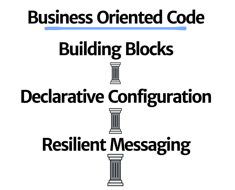 When Messaging is taking care of resiliency and also scalability part, there is still a problem of spending too much time on configuration either of Messaging or Application related things. The more configuration we have, the more it will become burden to maintain, which creates space for making mistakes and time consuming upgrades. Solution for that are sensible defaults and Declarative Configuration with Attributes. Attributes helps us state “what should happen” and abstracting away “how it should happen”. This in combination with Messaging, connects our components under the hood without a single line of configuration needed. Declarative Configuration is a power house for development which is intuitive and easy to change. - Building Blocks
