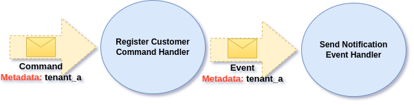 This means we can easily pass things that are not directly related to Customer Registration Command and access them, in context which make sense. For example we could pass HTTP Domain, IP Address in Metadata, and access it in Event Handler that stores those for auditing.