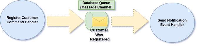 When Customer is registered we may want to trigger side effects, like sending an Email with Welcome Message. For those situation we can define Events and Event Handlers.